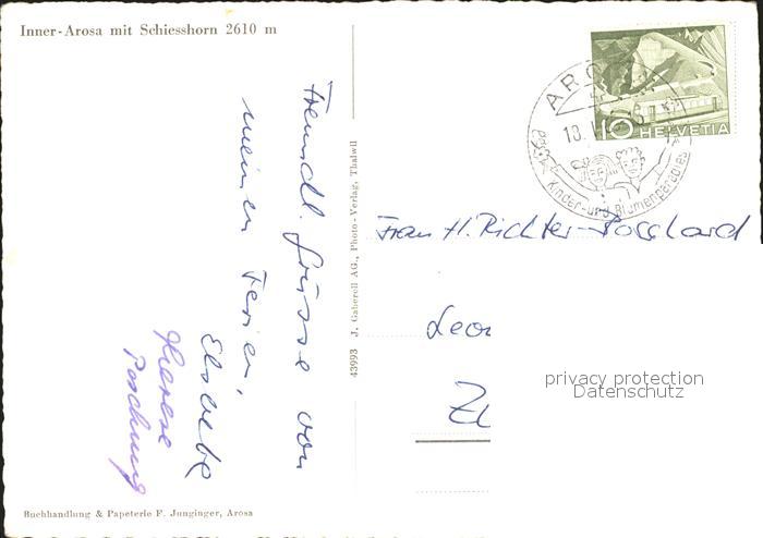 11649106 alte Postkarte Arosa GR Schiesshorn postalisch gelaufen Erhaltung siehe scans KatCode: 11470100345296