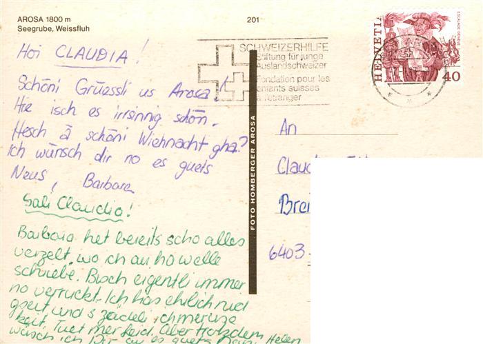 13921164 alte Postkarte Arosa GR Seegrube Weissfluh postalisch gelaufen Erhaltung siehe scans [FriedD77] KatCode: 11470100345296