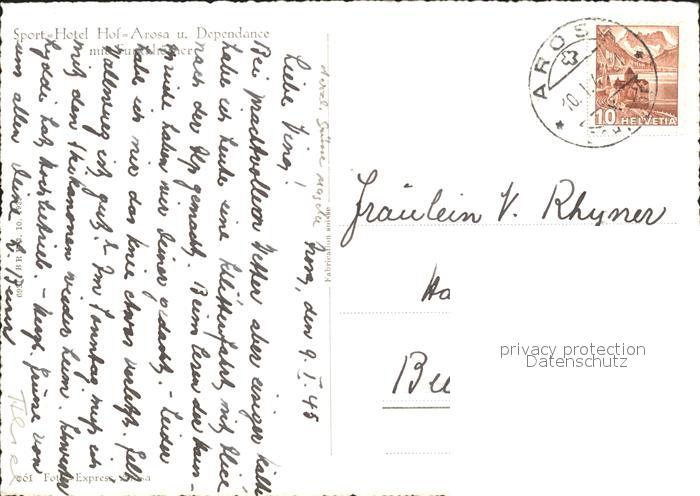 11632767 alte Postkarte Arosa GR Sport Hotel Hof Arosa und Dependance postalisch gelaufen Erhaltung siehe scans KatCode: 11470100345296