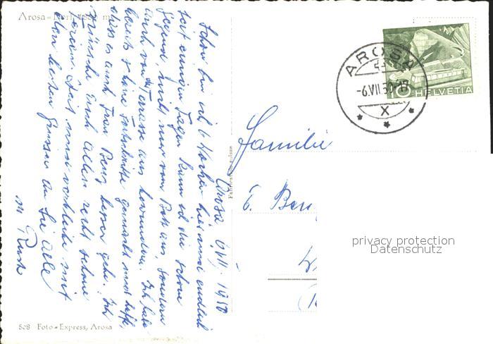 11632525 alte Postkarte Arosa GR Strassenpartie Kirche Hotel Schweizerhof postalisch gelaufen Erhaltung siehe scans KatCode: 11470100345296