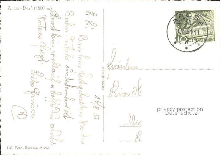 11631114 alte Postkarte Arosa GR Strassenpartie mit Hotel Schweizerhof und Kirche postalisch gelaufen Erhaltung siehe scans KatCode: 11470100345296