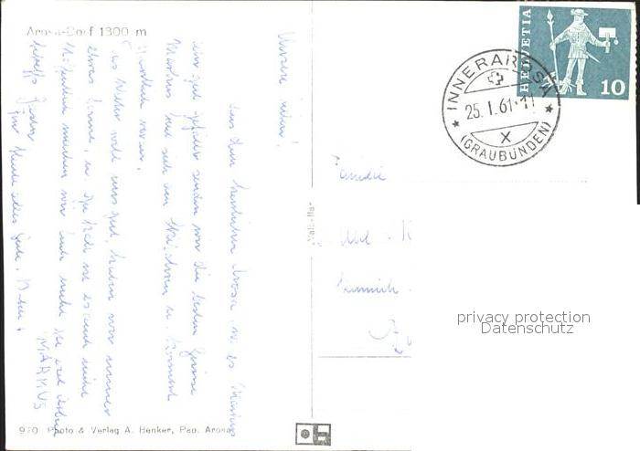 11631118 alte Postkarte Arosa GR Strassenpartie mit Kirche und Hotel Schweizerhof postalisch gelaufen Erhaltung siehe scans KatCode: 11470100345296