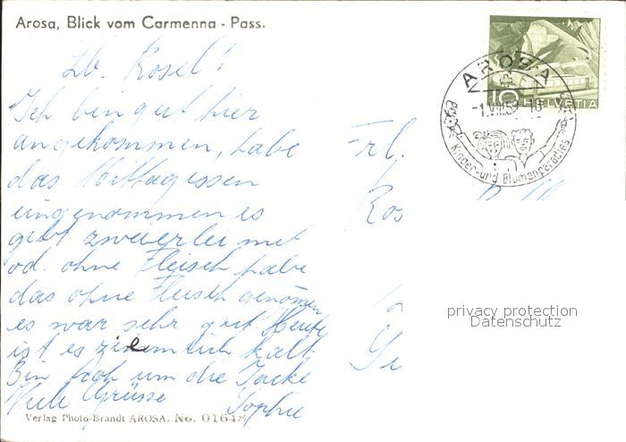 11632747 alte Postkarte Arosa GR vom Carmenna Pass postalisch gelaufen Erhaltung siehe scans KatCode: 11470100345296