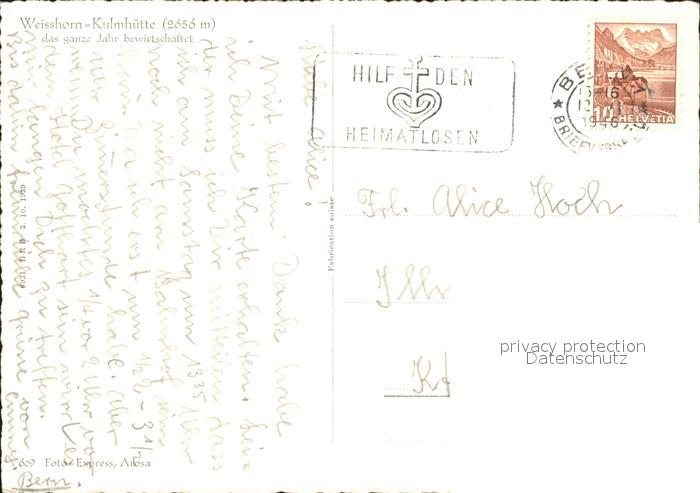 11658755 alte Postkarte Arosa GR Weisshorn Kulmhuette postalisch gelaufen Erhaltung siehe scans KatCode: 11470100345296