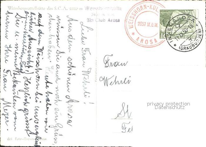 11658751 alte Postkarte Arosa GR Weisshorn Sattelhuette postalisch gelaufen Erhaltung siehe scans KatCode: 11470100345296