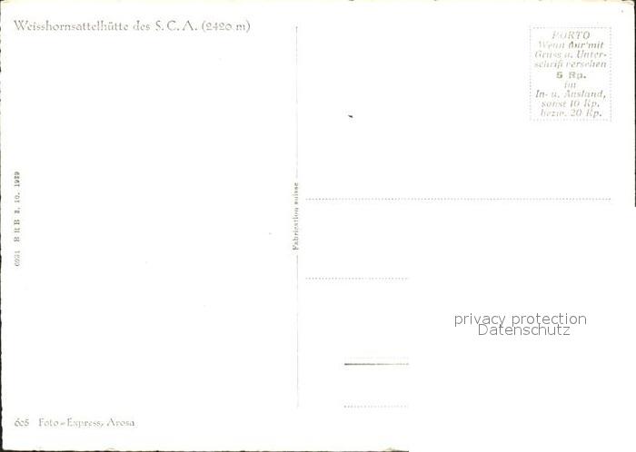 11658757 alte Postkarte Arosa GR Weisshornsattelhuette postalisch gelaufen Erhaltung siehe scans KatCode: 11470100345296