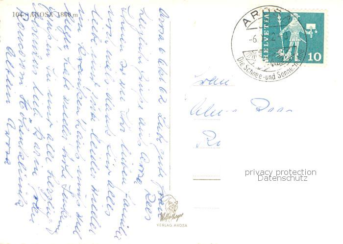 13771355 alte Postkarte Arosa GR Wintersportplatz in den Alpen Hotel Eislaufbahn postalisch gelaufen Erhaltung siehe scans [FriedD77] KatCode: 11470100345296
