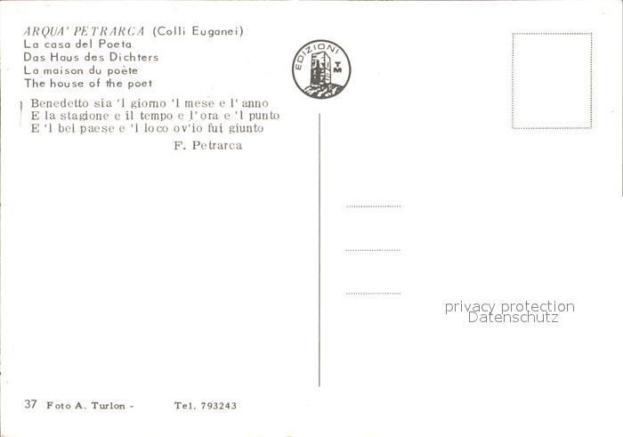 Arqua Petrarca Casa del Poeta Colli Euganei Haus des Dichters postalisch nicht gelaufen Erhaltung siehe scans