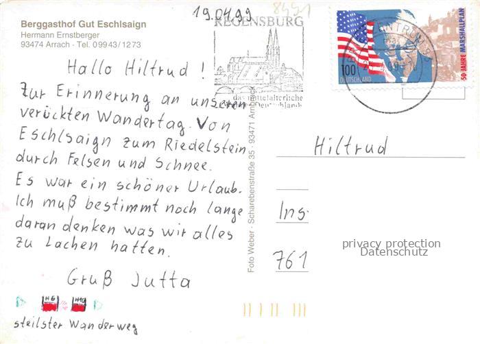 74049745 alte Postkarte Arrach Berggasthof Gut Eschlsaign Landschaftspanorama postalisch gelaufen Erhaltung siehe scans [FriedD77] KatCode: 11110009372113