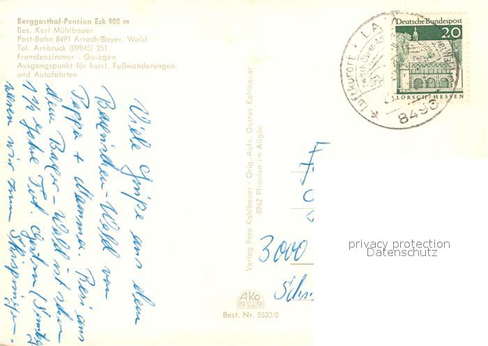 73124224 alte Postkarte Arrach Berggasthof Pension Eck postalisch gelaufen Erhaltung siehe scans [LiesaD40] KatCode: 11110009372113