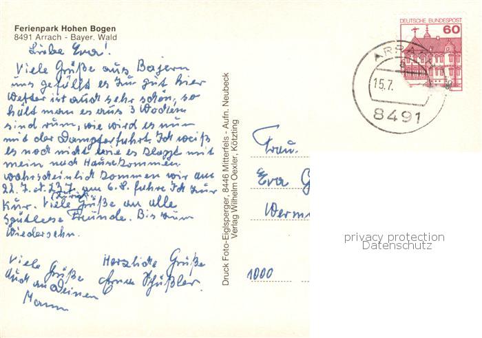 73767609 alte Postkarte Arrach Ferienpark Hohen Bogen postalisch gelaufen Erhaltung siehe scans [FriedD77] KatCode: 11110009372113