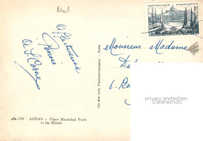 13238224 Arras Pas-de-Calais Place Maréchal Foch et les Hotels postalisch nicht gelaufen Erhaltung siehe scans [FriedD77] KatCode: 11170062162041
