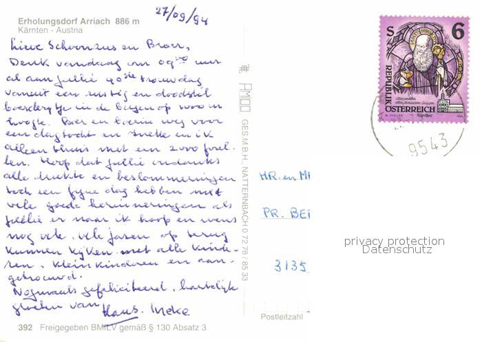 72823324 alte Postkarte Arriach Erholungsdorf Alpen Fliegeraufnahme postalisch gelaufen Erhaltung siehe scans [FriedD77] KatCode: 11390211020703