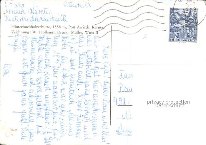 72603622 alte Postkarte Arriach Hinterbuchholzerhuette Zeichnung W. Hofhansl Kuenstlerkarte postalisch gelaufen Erhaltung siehe scans [FriedD77] KatCode: 11390211020703