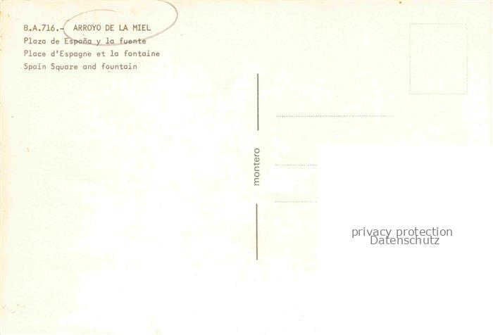 74100757 Arroyo de la Miel Malaga Andalusia ES Plaza de Espana y la fuente postalisch nicht gelaufen Erhaltung siehe scans [FriedD77] KatCode: 11510