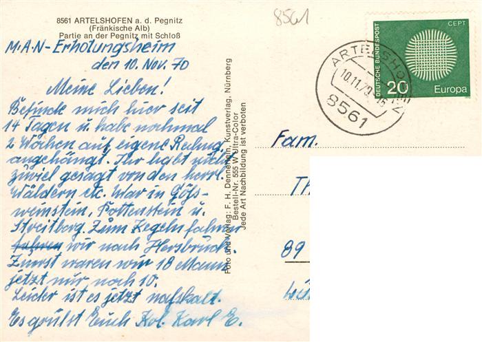 73932699 alte Postkarte Artelshofen Vorra Pegnitzpartie mit Schloss postalisch gelaufen Erhaltung siehe scans [WerneD78] KatCode: 11110009574161