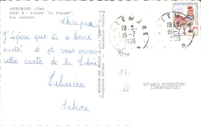 12313214 carte postale Artemare Fliegeraufnahme Colonie La Cigogne postalisch gelaufen Erhaltung siehe scans KatCode: 11170001101022