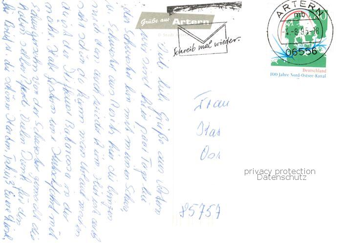 73840082 alte Postkarte Artern Unstrut Rathaus Roland Boulevard Markt Solebad postalisch gelaufen Erhaltung siehe scans [WerneD78] KatCode: 11110016065002