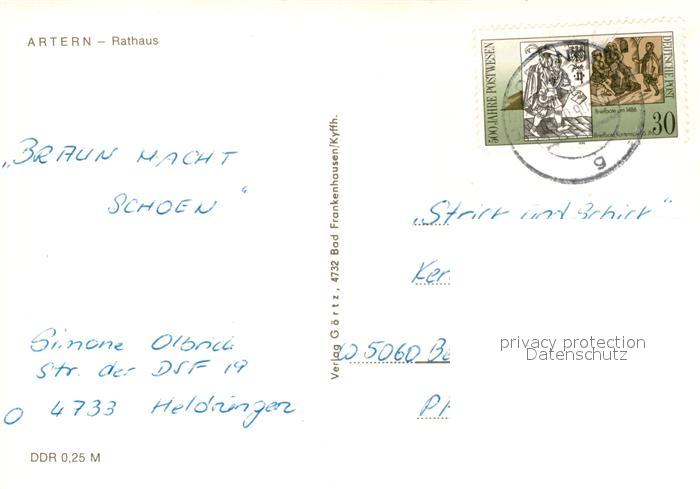 72961149 alte Postkarte Artern Unstrut Rathaus postalisch gelaufen Erhaltung siehe scans [NatalD47] KatCode: 11110016065002
