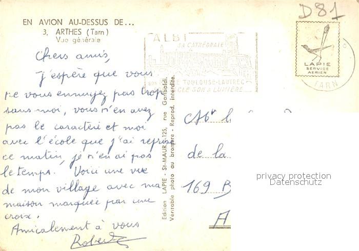 13583902 Arthes Vue aérienne postalisch gelaufen Erhaltung siehe scans [FriedD77] carte postale Frie Katcode 11170081181018