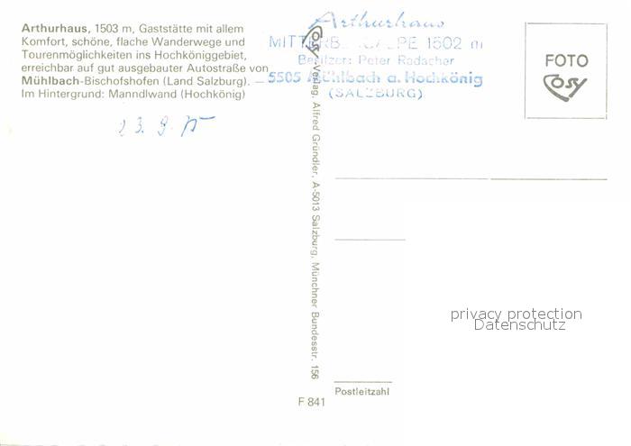 72626780 Arthurhaus Berggaststaette Manndlwand Hochkoeniggebiet postalisch nicht gelaufen Erhaltung siehe scans [FriedD77] KatCode: 11390322050415
