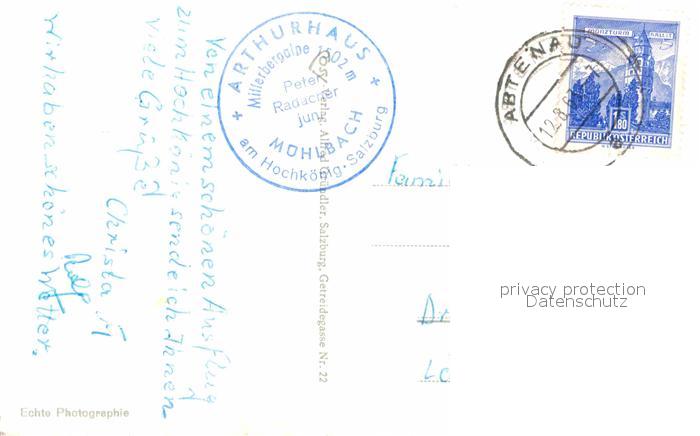 72647197 alte Postkarte Arthurhaus Manndlwand postalisch gelaufen Erhaltung siehe scans [NatalD47] KatCode: 11390322050415
