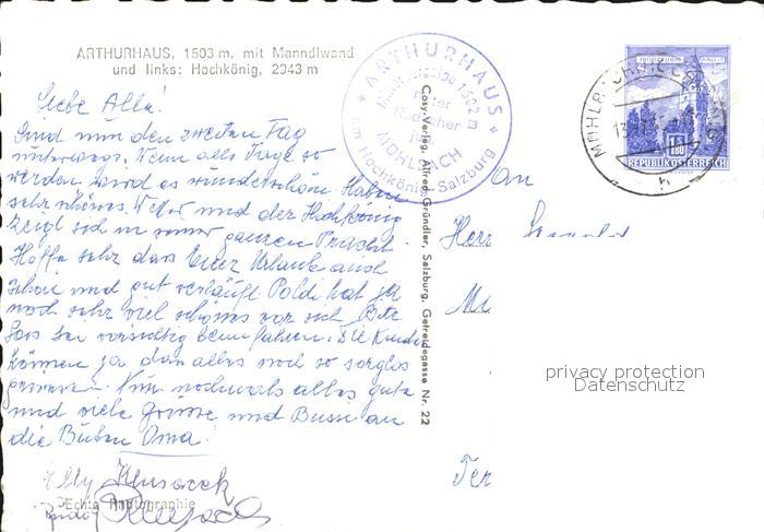 72461944 alte Postkarte Arthurhaus mit Manndlwand postalisch gelaufen Erhaltung siehe scans KatCode: 11390322050415