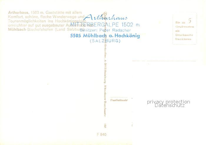 73291257 Arthurhaus Mitterbergalpe Muehlbach am Hochkoenig postalisch nicht gelaufen Erhaltung siehe scans [LiesaD40] KatCode: 11390322050415