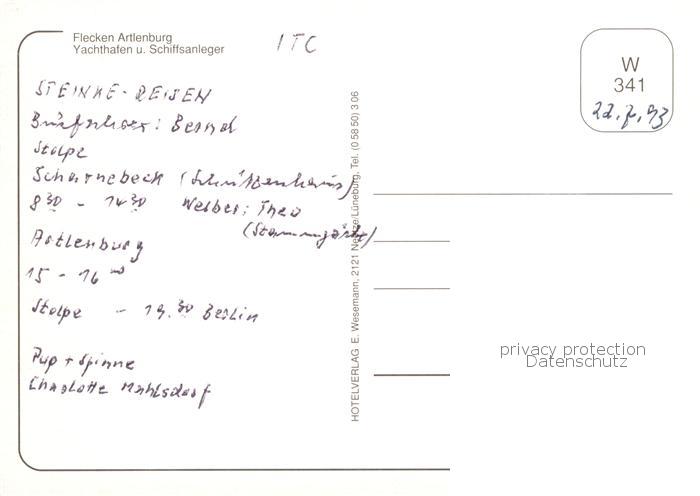 73840171 alte Postkarte Artlenburg Hinweistafel Yachthafen und Schiffsanleger postalisch gelaufen Erhaltung siehe scans [WerneD78] KatCode: 11110003355003