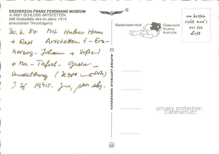 72416397 Artstetten-Poebring Schloss Erzherzog Franz Ferdinand Museum Fliegeraufnahme postalisch nicht gelaufen Erhaltung siehe scans KatCode: 11390121031502
