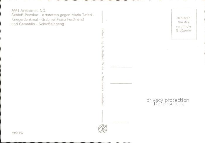 11923322 Artstetten-Poebring Schloss Pension Artstetten maria Taferl Kriegerdenkmal Grabmal Franz Ferdinand Schlosseingang postalisch nicht gelaufen Erhaltung siehe scans KatCode: 11390121031502