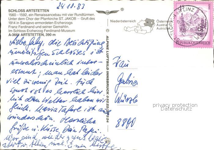 71965085 alte Postkarte Artstetten-Poebring Schloss Pfarrkirche St. Jakob, Ferdinand Museum postalisch gelaufen Erhaltung siehe scans KatCode: 11390121031502