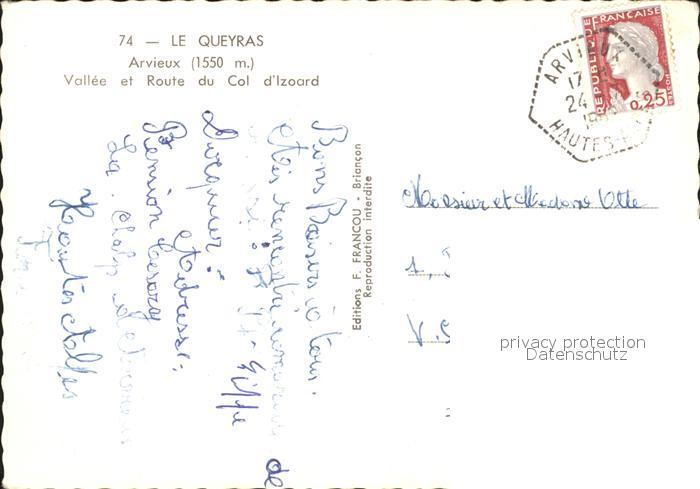 11867987 carte postale Arvieux Vallee et Route du Col d Izoard postalisch gelaufen Erhaltung siehe scans KatCode: 11170005105007