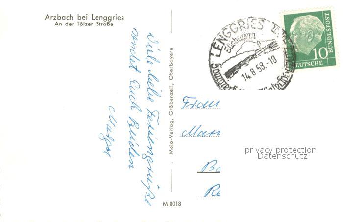 73670972 alte Postkarte Arzbach Bad Toelz Toelzer Strasse Blick zur Kirche Bayerische Voralpen postalisch gelaufen Erhaltung siehe scans [FriedD77] KatCode: 11110009173145