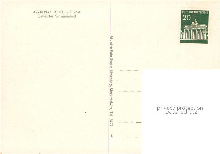 73853982 Arzberg Oberfranken Beheiztes Schwimmbad postalisch nicht gelaufen Erhaltung siehe scans [WerneD78] KatCode: 11110009479112