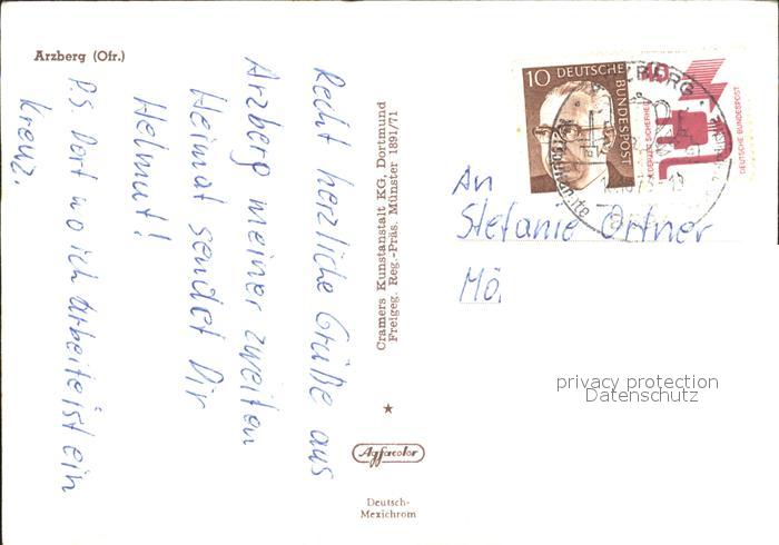 72125881 alte Postkarte Arzberg Oberfranken Fliegeraufnahme postalisch gelaufen Erhaltung siehe scans KatCode: 11110009479112