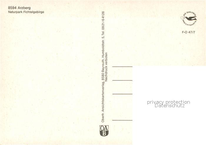 73249963 Arzberg Oberfranken Panorama Naturpark Fichtelgebirge postalisch nicht gelaufen Erhaltung siehe scans [FriedD77] KatCode: 11110009479112