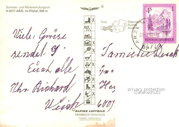 73587145 alte Postkarte Arzl Pitztal Fliegeraufnahme postalisch gelaufen Erhaltung siehe scans [WerneD78] KatCode: 11390334070201