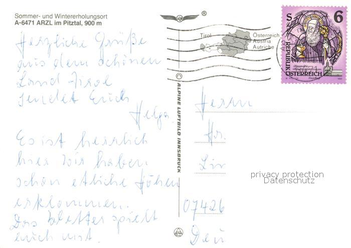 73587121 alte Postkarte Arzl Pitztal Fliegeraufnahme postalisch gelaufen Erhaltung siehe scans [WerneD78] KatCode: 11390334070201