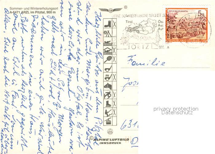 73209785 alte Postkarte Arzl Pitztal Fliegeraufnahme Heiterwand Imst postalisch gelaufen Erhaltung siehe scans [NatalD47] KatCode: 11390334070201