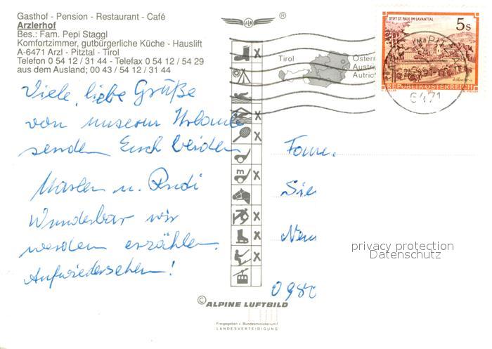 72961303 alte Postkarte Arzl Pitztal Fliegeraufnahme mit Kaunergrat postalisch gelaufen Erhaltung siehe scans [WerneD78] KatCode: 11390334070201