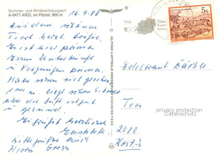 73778452 alte Postkarte Arzl Pitztal Fliegeraufnahme postalisch gelaufen Erhaltung siehe scans [WerneD78] KatCode: 11390334070201