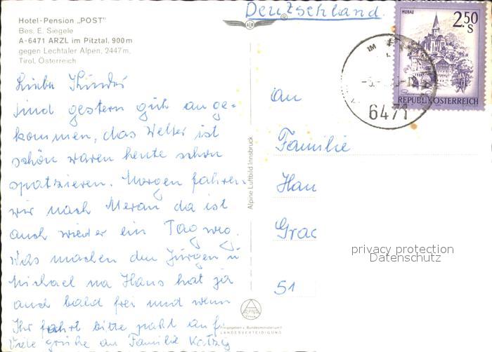 12513147 alte Postkarte Arzl Pitztal Panorama postalisch gelaufen Erhaltung siehe scans KatCode: 11390334070201