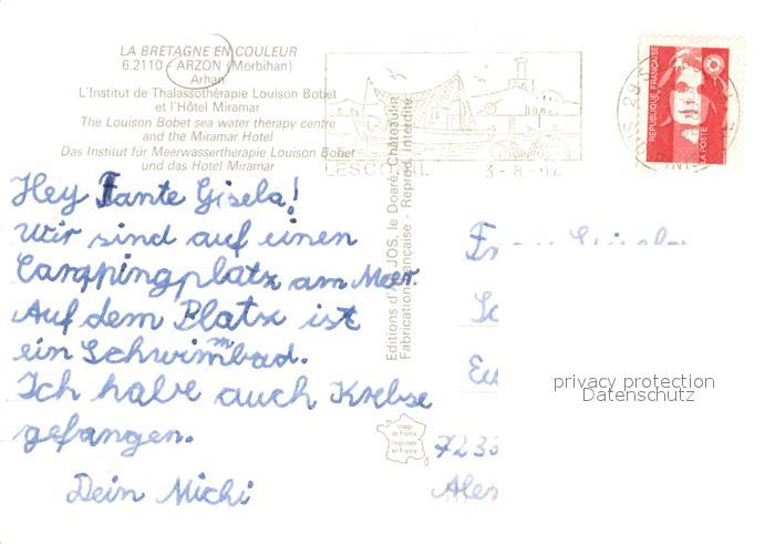 13743084 Arzon 56 Institut de Thalassotherapie Louison Bobel et l’Hotel Miramar Vue aerienne postalisch gelaufen Erhaltung siehe scans [WerneD78] carte postale Wern Katcode 11170056356005