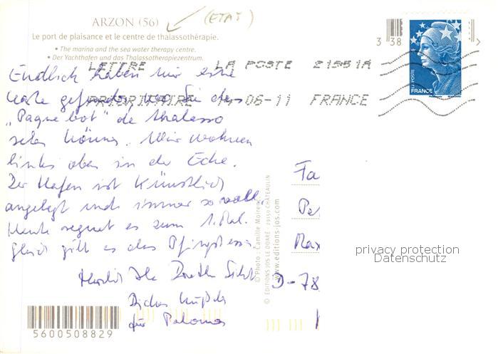 13793668 Arzon 56 Le Crouesty Port de plaisance Centre de thalassothérapie vue aérienne postalisch gelaufen Fliegeraufnahme Erhaltung siehe scans [FriedD77] Fliegeraufnahme carte postale Frie Katcode 11170056356005