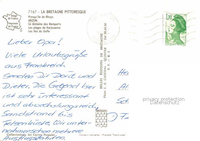 12651915 carte postale Arzon Vue aerienne Domaine des Remparts Plages de Kerjouanno Iles du Golfe postalisch gelaufen Erhaltung siehe scans [WerneD78] KatCode: 11170056356005