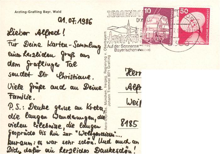 73895261 alte Postkarte Arzting Fliegeraufnahme postalisch gelaufen Erhaltung siehe scans [WerneD78] KatCode: 11110009271122