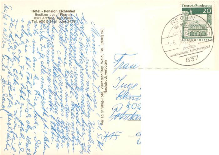 73880846 alte Postkarte Arzting Hotel Pension Eichenhof Flur Gastraum Dampflok postalisch gelaufen Erhaltung siehe scans [WerneD78] KatCode: 11110009271122