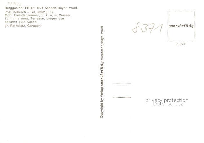 73868842 Asbach Drachselsried Bayerischer Wald Berggasthof Fritz postalisch nicht gelaufen Erhaltung siehe scans [WerneD78] Wern Katcode 11110009276120