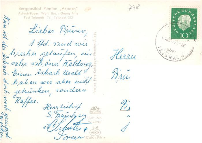 73924596 Asbach Drachselsried Bayerischer Wald Panorama Berggasthof Pension Fritz Gaststube postalisch gelaufen Erhaltung siehe scans [WerneD78] alte Postkarte Wern Katcode 11110009276120